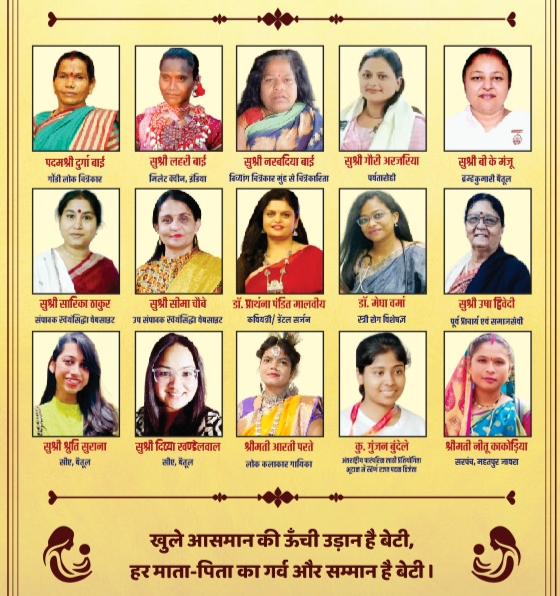 जिले, प्रदेश एवं देश की प्रतिभाशाली बेटियों की परम्परा बैतूल पिछले पांच वर्षों से निभा रहा है। 22 सितंबर रविवार को डाटर्स डे के अवसर पर स्व. नेहा अभिषेक श्रीवास्तव की स्मृति में आयोजित मणिकर्णिका सम्मान में एक बार फिर देश की ख्यातिनाम हस्तियां बैतूल में जुट रही है। रामकृष्ण बगिया में आयोजित कार्यक्रम में डीडी उईके केन्द्रीय राज्य मंत्री जनजातीय मामले, विधायक हेमंत खण्डेलवाल बैतूल, डॉ योगेश पंडागे्र आमला, श्रीमती गंगा बाई उईके घोड़ाडोंगरी, नगर पालिका अध्यक्ष पार्वती बाई बारस्कर, पूर्व विधायक निलय डागा, प्रधान जिला न्यायाधीश प्राणेश प्राण, कलेक्टर नरेन्द्रकुमार सूर्यवंशी, एसपी निश्चल झारिया, डीएफओ विजयानंतम टीआर, आर टी ओ अनुराग शुक्ला, सीएमओ नगर पालिका ओमपाल सिंह भदौरिया, जिला सैनिक अधिकारी कैप्टन सुमीत सिंह, प्रसिद्ध ज्योतिष कांत दीक्षित, जिला कांगे्रस अध्यक्ष हेमंत वागद्रे सहित डॉ वंसत श्रीवास्तव, एड. नीरजा श्रीवास्तव सहित मणिकर्णिका सम्मान समारोह आयोजक टीम के हस्ते 30 बेटियों को मणिकर्णिका सम्मान से नवाजा जाएगा। आयोजन समिति ने छात्र-छात्राओं एवं जिले वासियों से आयोजन में शामिल होने का अनुरोध किया है। कार्यक्रम में मिलेट क्वीन लहरी बाई के बीज बैंक, पदमश्री दुर्गा बाई एवं लोकचित्रकार नरबदिया बाई द्वारा बनाए गए चित्र देख सकेंगे और चित्रकारी के शौकीन लोग इन चित्रों को खरीद भी सकेंगे।समारोह में स्थानीय कलाकारों द्वारा टिगरिया का भरेवा आर्ट, बैंबू आर्ट और उत्तम गुणवत्ता के शहद के स्टॉल भी लगाए जायेंगे। कार्यक्रम में कौन बनेगा करोड़पति प्रोग्राम में जिले का नाम रोशन करने वाले बंटी वाड़ीवा भी मौजूद होंगे।
