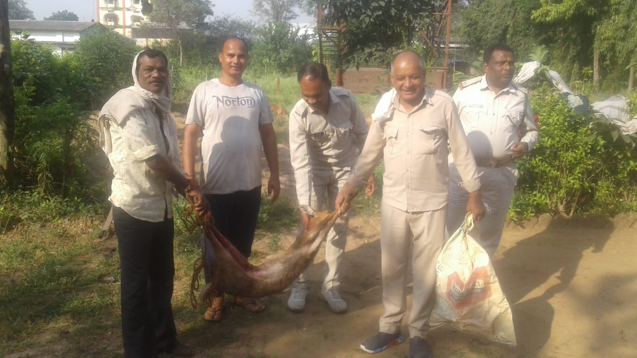 कोसमी इंडस्ट्रियल एरिया में आए हिरण को ग्रामीणों ने कुत्तों से बचाया, वन विभाग को सौंपा हिरण की हालत गंभीर