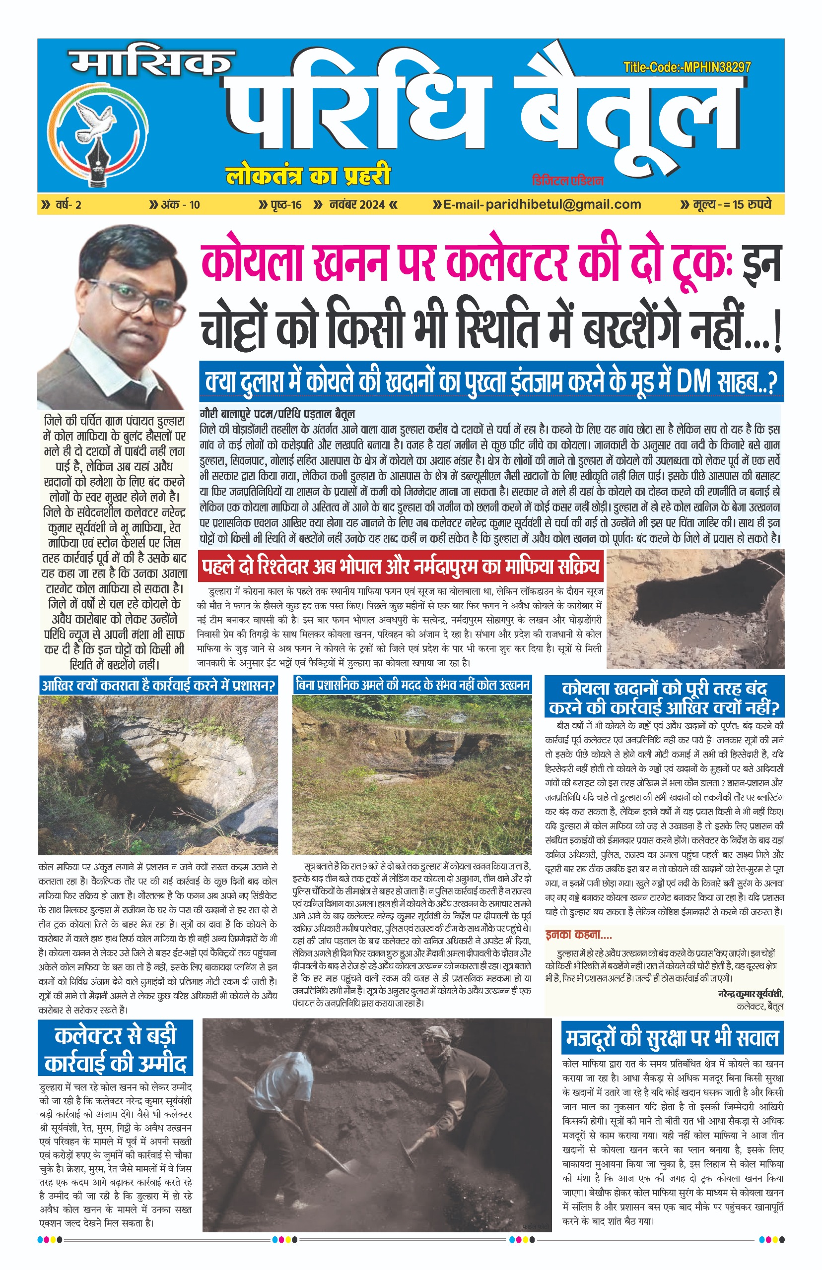 जिले की चर्चित ग्राम पंचायत डुल्हारा में कोल माफिया के बुलंद हौसलों पर भले ही दो दशकों में पाबंदी नहीं लग पाई है, लेकिन अब यहां अवैध खदानों को हमेशा के लिए बंद करने लोगों के स्वर मुखर होने लगे है। जिले के संवेदनशील कलेक्टर नरेन्द्र कुमार सूर्यवंशी ने भू माफिया, रेत माफिया एवं स्टोन के्रशर्स पर जिस तरह कार्रवाई पूर्व में की है उसके बाद यह कहा जा रहा है कि उनका अगला टारगेट कोल माफिया हो सकता है। जिले में वर्षों से चल रहे कोयले के अवैध कारोबार को लेकर उन्होंने परिधि न्यूज से अपनी मंशा भी साफ कर दी है कि इन चोट्टों को किसी भी स्थिति में बख्शेंगे नहीं।