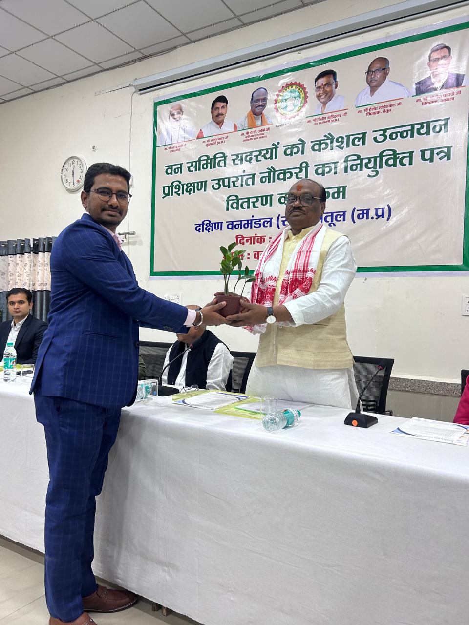 दक्षिण बैतूल (सा.) वनमंडल के अंतर्गत वन समिति सदस्यों के कौशल उन्नयन प्रशिक्षण उपरांत रोजगार हेतु नियुक्ति पत्र और लर्निंग ड्राइविंग लाइसेंस वितरण कार्यक्रम का आयोजन 21 दिसंबर को वन विद्यालय बैतूल में आयोजित किया गया। कार्यक्रम में मुख्य अतिथि के रूप में माननीय दुर्गादास उईके, केंद्रीय राज्य मंत्री और सांसद बैतूल-हरदा-हरसूद उपस्थित रहे।