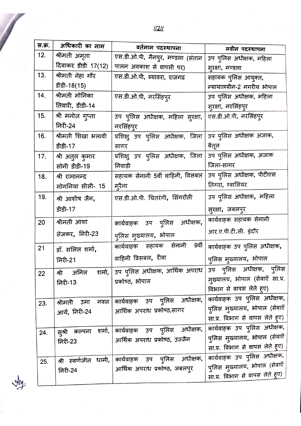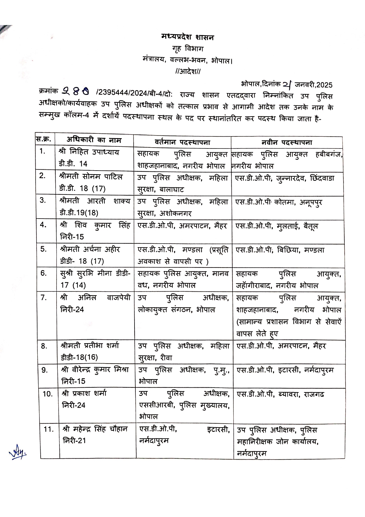 तबादल सूची में शामिल मध्य प्रदेश पुलिस के 9 अधिकारी सामान्य प्रशासन विभाग के अधीन अपनी सेवाएं दे रहे थे। गृह मंत्रालय ने इनकी सेवाएं GDA से वापस लेकर मूल विभाग में पदस्थ किया है।
