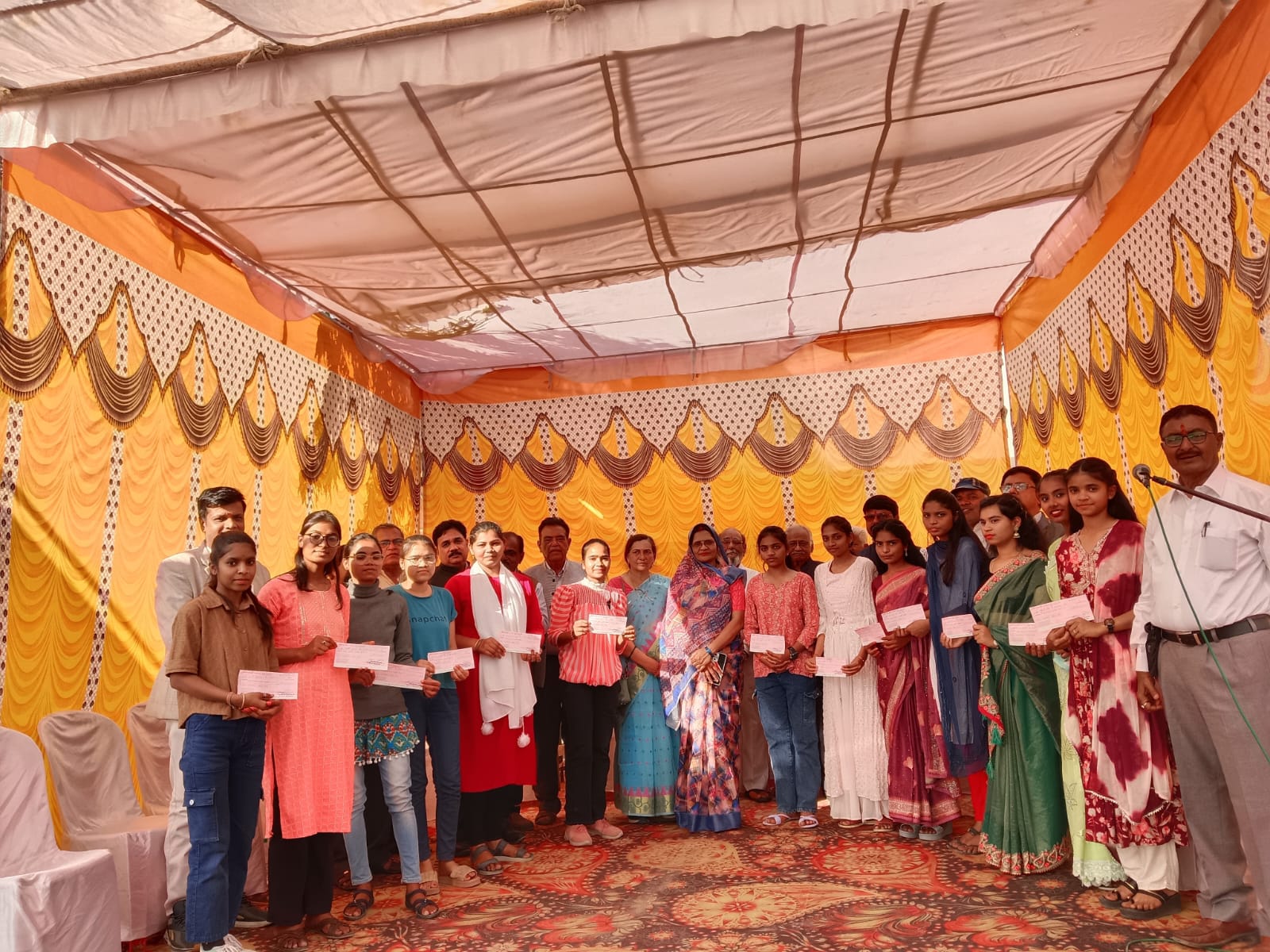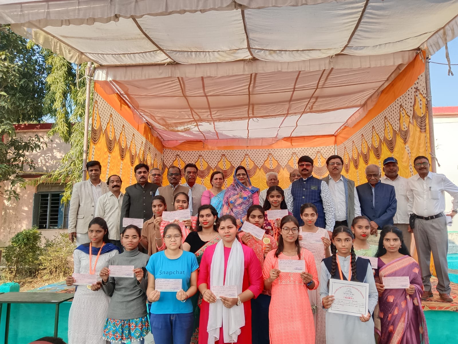 कक्षा 10 वी और 12 वी की स्कूल टॉपर छात्राओं को सम्मानित किया गया जिनमें कीर्ति लोनारे, काजल बालापुरे,श्वेता कनोजे,रानी पोटफोड़े,कोमल सातपुते,तनु अनोठे,आयुषी लोनारे,मुस्कान बड़खाने,खुशबू पद्माकर को दस दस हजार रुपए तथा इसी क्रम में 5- 5 हजार रुपए के चेक रोहिणी पवार, रितिका कोसे, करुणा पवार, लक्ष्मी पानकर, काजल गायकवाड, मोनिका बुआडे को मंच पर उपस्थित अतिथियों ने वितरित किये। इस गरिमा मय कार्यक्रम में मंचासीन अतिथि नगर पालिका अध्यक्ष श्रीमती दुर्गावती वर्मा, पूर्व नगर पालिका अध्यक्ष संजय वर्मा, पूर्व नगर पालिका अध्यक्ष सुधाकर पवार, पूर्व नगर पालिका अध्यक्ष नरेंद्र शुक्ला, रिटायर्ड प्रोफेसर शिवकुमार शुक्ला, रिटायर्ड व्याख्याता एस.एस.वर्मा, इंजीनियर एस.एन. वर्मा, पूर्व जिला भाजपा अध्यक्ष जितेंद्र वर्मा, रिटायर्ड इंजीनियर शरद वर्मा, रिटायर्ड कोऑपरेटिव अधिकारी कमल पवार ,समाजसेवी अर्जुन वर्मा ,डॉक्टर भूपेंद्र राठौर, प्रिंसिपल सीएम राइज सुश्री साधना हैंड, एवं प्रिंसिपल गर्ल्स हायर सेकेंडरी कैलाश राठौड़ के साथ नगर के गणमान्य नागरिक उपस्थित थे । कार्यक्रम का संचालन शंकर पवार ने किया ।
