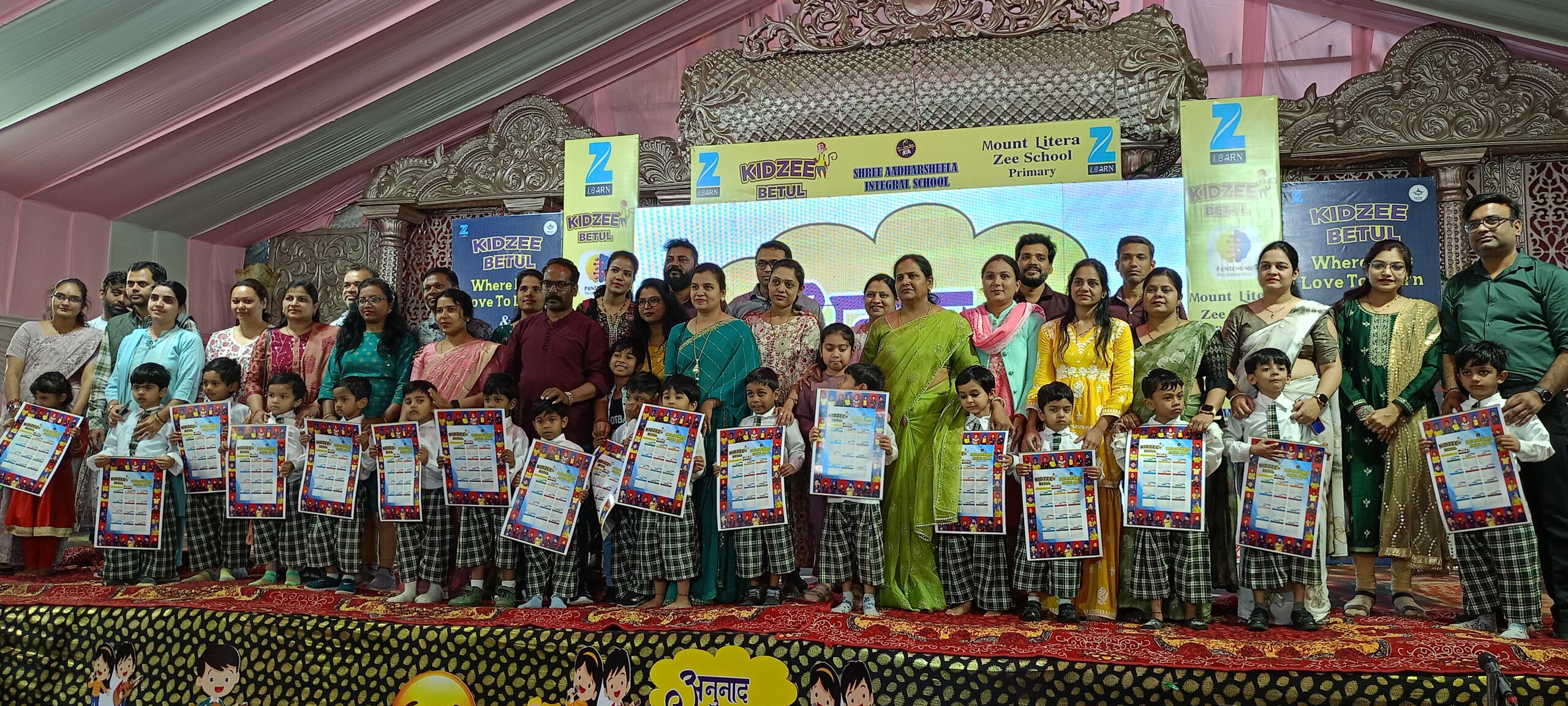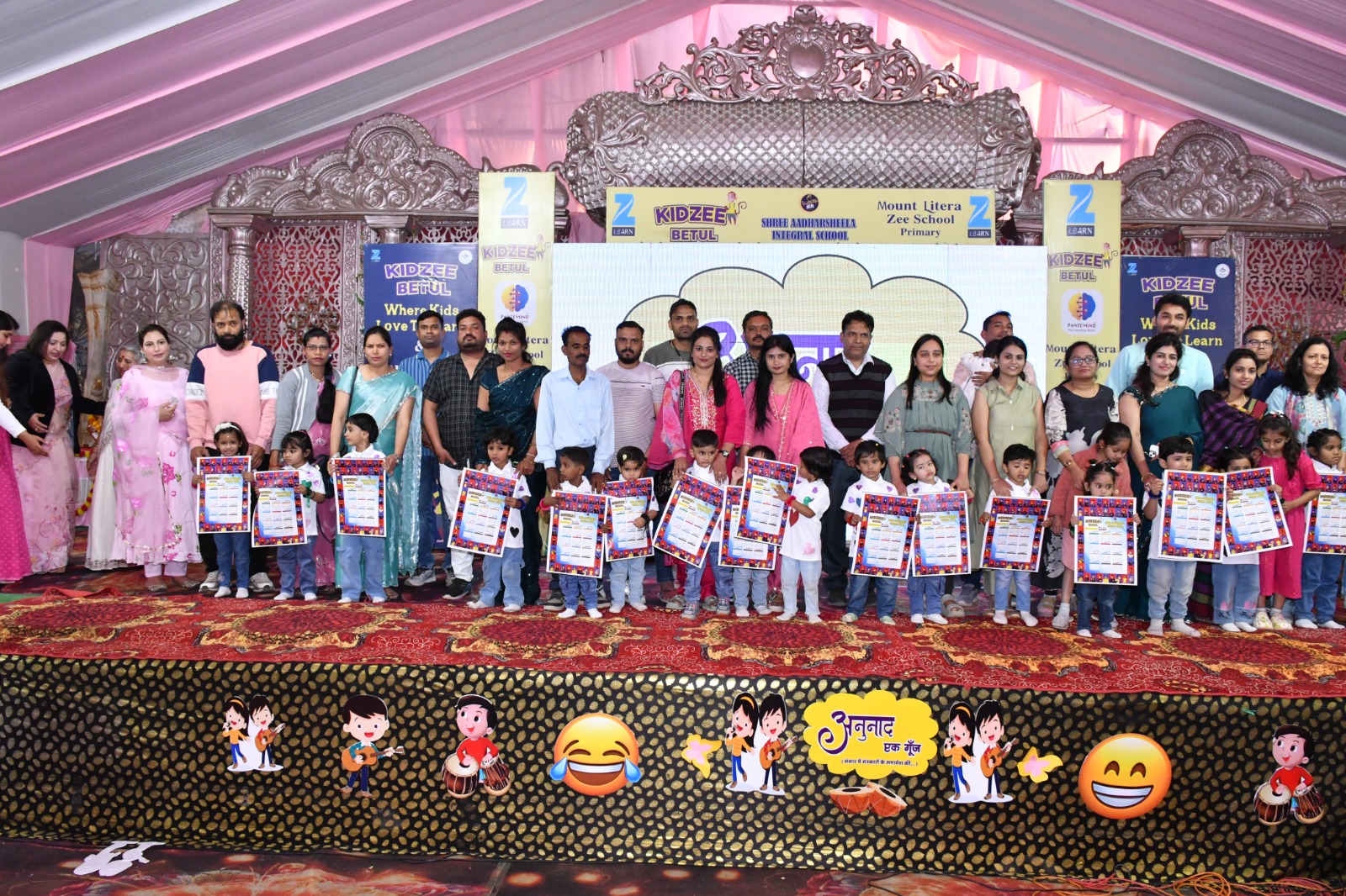 किड्जी,बैतूल एवं श्री आधारशिला स्कूल के संयुक्त तत्वावधान में वार्षिकोत्सव अनुनाद एक गूंज (संसार में संस्कारों के समावेश की) का आयोजन 1 फरवरी शनिवार को सम्पन्न हुआ।कार्यक्रम की शुरुआत में दीप प्रज्वलन श्री शारदा एजुकेशन सोसाइटी के अध्यक्ष अशोक पाठक,किड्जी एवं माउंट लिटेरा संचालिका मंजुला पाठक एवं समाजसेवी मीरा एंथनी द्वारा की गई साथ ही माउंट लिटेरा के छात्र छात्राओं द्वारा मां शारदा माता की स्तुति गान प्रस्तुत किया। प्ले ग्रुप के बच्चों द्वारा मनमोहक प्रस्तुत किया गया जो भारत के नवीनता को ग्रहण करने को इंगित करता है।नर्सरी के बालकों ने भारतीय विविधता में एकता को प्रदर्शित करता लैंग्वेज डांस प्रस्तुत किया।नर्सरी बालिकाओं ने विभिन्न रंगों की थीम पर नृत्य प्रस्तुत किया,जूनियर केजी की छात्राओं ने भारतीय सभ्यता में पौराणिक और आधुनिक सभ्यताओं के समावेश को व्यक्त करती नृत्य प्रस्तुति दी।