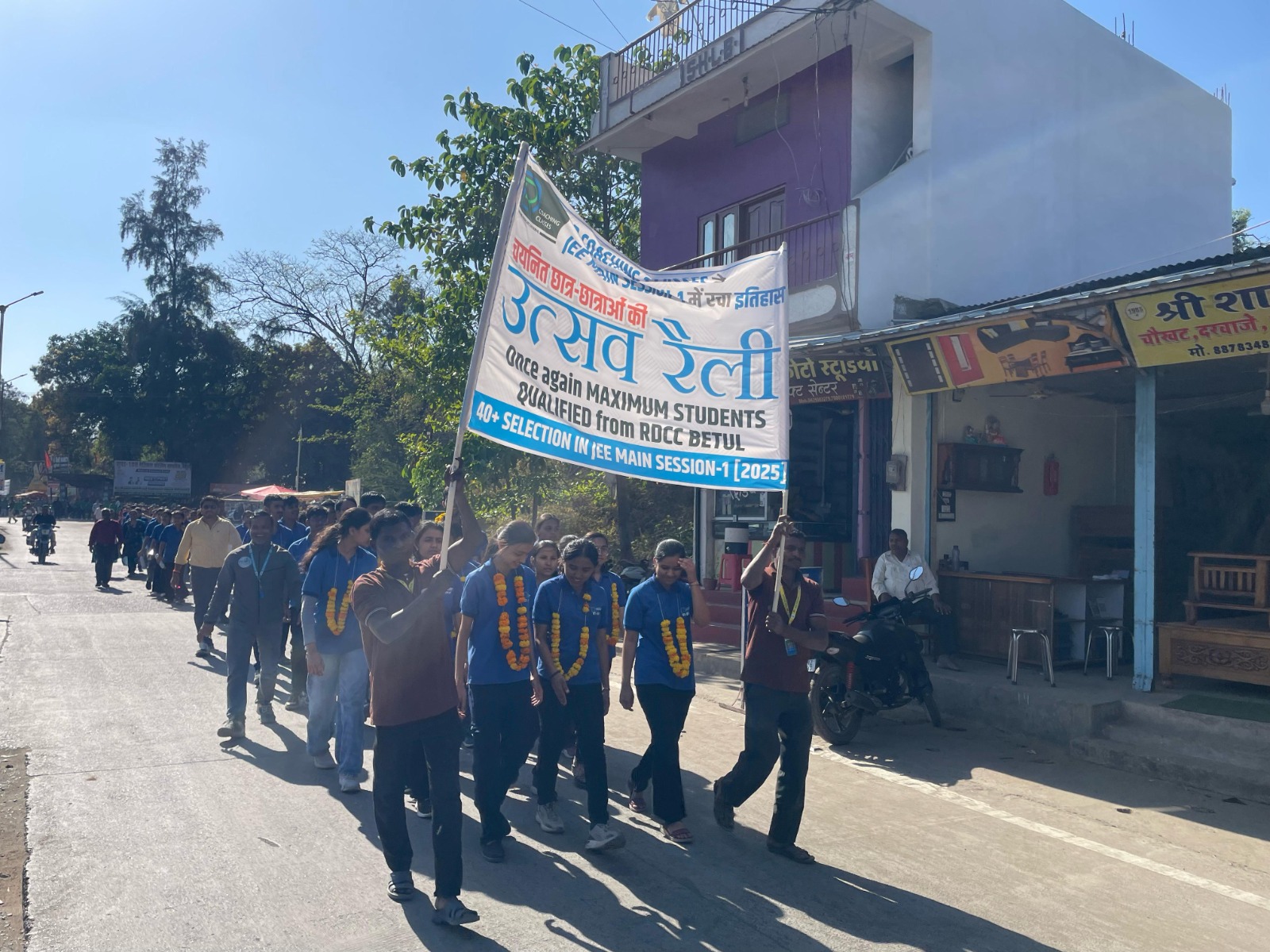 जेईई मेन्स सेशन-1 का रिजल्ट घोषित होने के बाद गुरूवार को आर.डी. कोचिंग क्लासेस द्वारा उत्कृष्ट सफलता का जश्न मनाया। ऐतिहासिक सफलता मिलने पर आर.डी.कोचिंग क्लासेस के 700 से अधिक विद्यार्थियों और शिक्षक-शिक्षिकाओं ने उत्सव रैली निकालकर खुशी मनाई। साथ ही सफल छात्र-छात्राओं को सम्मानित किया गया। आर.डी. कोचिंग क्लासेस बैतूल के जेईई मेन्स के उत्कृष्ट परीक्षा परिणाम आने पर गणमान्य नागरिकों, पालको ने सफल छात्र-छात्राओं सहित शिक्षक-शिक्षिकाओं और आर.डी. संस्थान की डायरेक्टर को शुभकामनाएं प्रेषित की है। कार्यक्रम में प्रमुख रूप से डायरेक्टर श्रीमती ऋतु खण्डेलवाल, कोचिंग क्लासेस सेंटर के प्रमुख एवं उप प्राचार्य भी मौजूद रहे।