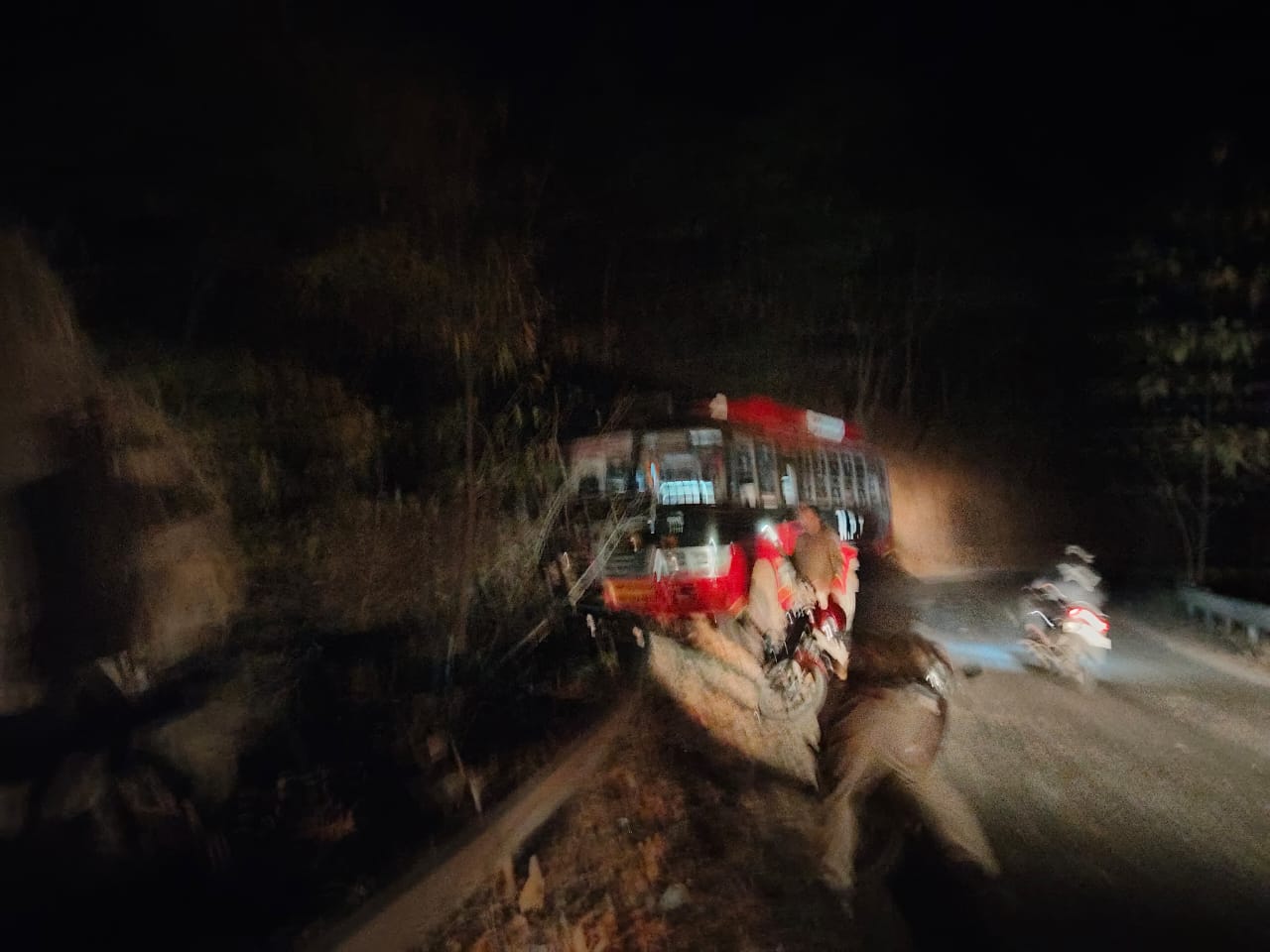 प्राप्त जानकारी के अनुसर सोमवार शाम बजे 7.30 बैतूल से परतवाड़ा की ओर जा रही एनपी कंपनी की बस हनुमान मंदिर ताप्ती कनारा घाट की पुलिया के पास अनियंत्रित हो गई।रेलिंग में बस का चका फंसने से बस पलटने से बच गई।बस में करीब 65 यात्री थे सूचना मिलते ही खेड़ी से ए एस आई प्रवीण पचौरी टीम के साथ मौके पर पहुंचे। जानकारी के अनुसार कुछ यात्री अपने साधनों से गंतव्य के लिए रवाना हो गए वहीं बाकी यात्रियों के लिए दूसरी बस बुलवाकर उन्हें व रवाना किया गया।किसी भी यात्री के घायल या चोटिल होने की सूचना नहीं है।समाचार लिखे जाने तक पुलिस की मौजूदगी में बस को निकालने के प्रयास किए रहे थे।
