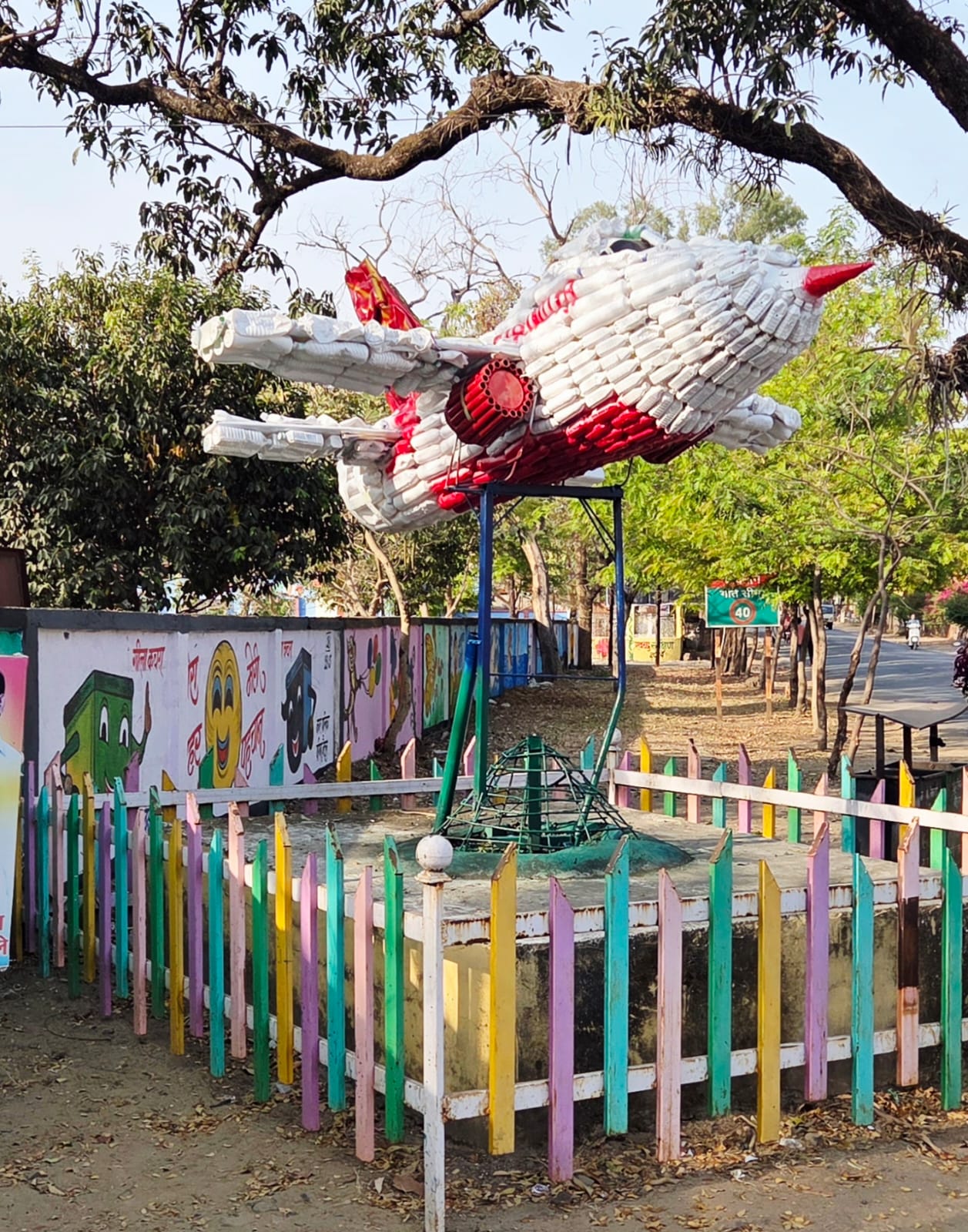 कबाड़ से जुगाड़ का अगर बेहतरीन उदाहरण देखना है तो आप कहीं मत जाइये सिर्फ शिवाजी चौक और मुल्ला पेट्रोल पंप पर पहुंच जाईए। इन दोनों जगहों पर नगर पालिका की प्रथम महिला ब्रांड एम्बेसेडर श्रीमती नेहा गर्ग के निर्देशन में बनाई गई आकर्षक कलाकृतियां हवाई जहाज और मोर राहगिरों का ना सिर्फ मनमोह रही है बल्कि राहगिर कुछ देर यहां पर रूककर कलाकृतियों को निहारते हुए सेल्फी भी ले रहे है। नगर पालिका के स्वच्छ सर्वेक्षण में निश्चित रूप से यह कलाकृतियां रैकिंग में उछाल लाने का काम करेगी।