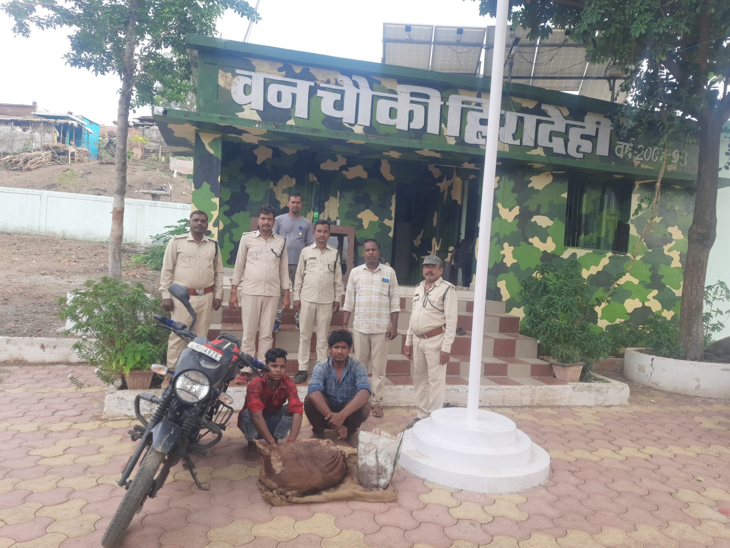 ✓वन विभाग की मुस्तैदी से धराए दो शिकारी, 32 किलो मांस और बाइक जब्त