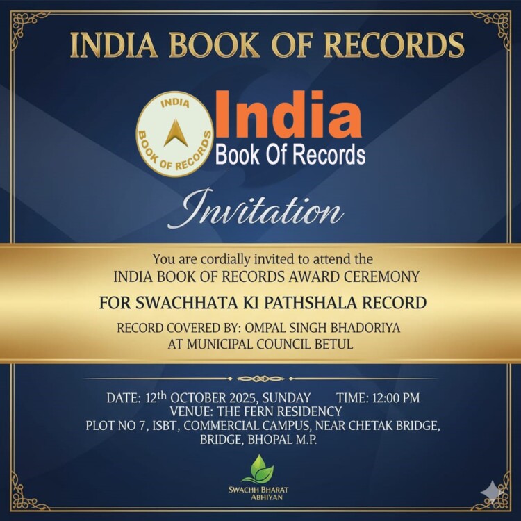 स्वच्छता के क्षेत्र में लगातार नवाचार और उल्लेखनीय कार्य करने वाले नगर पालिका परिषद टीकमगढ़ के मुख्य नगर पालिका अधिकारी (सीएमओ) ओमपाल सिंह भदौरिया को भोपाल में आयोजित एक भव्य समारोह में सम्मानित किया गया। उन्हें यह सम्मान बैतूल में  “स्वच्छता की पाठशाला” जैसे अनूठे नवाचार के लिए प्रदान किया गया, जिसके अंतर्गत उन्होंने एक ही दिन में 191 संस्थानों में एक साथ स्वच्छता की पाठशाला आयोजित कर नया कीर्तिमान स्थापित किया था। जानकारी के अनुसार, यह उपलब्धि उस समय हासिल की गई थी जब श्री भदौरिया बैतूल नगर पालिका में सीएमओ के पद पर पदस्थ थे। उन्होंने बिना किसी सरकारी खर्च के यह अभिनव पहल की थी।
