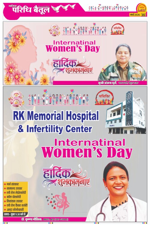 अंतरराष्ट्रीय महिला दिवस एवं रंगोत्सव की हार्दिक शुभकामनाएं… By Paridhi News Last updated Mar 7, 2026 🔊 यह समाचार सुनें परिधि न्यूज बैतूल Share