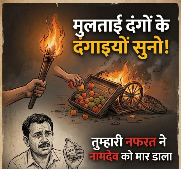 सुनो ओ ‘दंगाइयों’! नफरत की जिस आग को तुमने हवा दी थी, आज उसकी राख में एक स्वाभिमानी परिवार पूरी तरह दफन हो गया है। जब तुम नामदेव बचले का ठेला जला रहे थे, उसके फल लूट रहे थे, तब शायद तुम्हें लग रहा होगा कि तुमने किसी को नीचा दिखा दिया या अपनी “ताकत” साबित कर दी। पर आज अपनी इस कथित “उपलब्धि” का वो खौफनाक अंजाम देख लो, जिसे तुमने अपनी नफरत से लिखा है:
