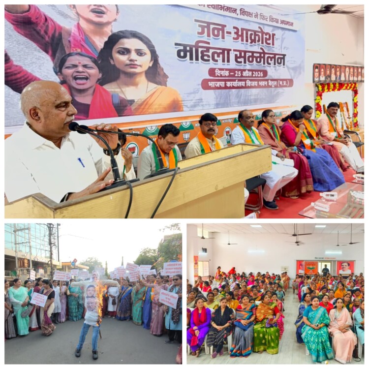 जिला भाजपा कार्यालय विजय भवन में महिला जन आक्रोश को लेकर महिला जन आक्रोश सम्मेलन का आयोजन किया गया। सम्मेलन को संबोधित करते हुए भाजपा प्रदेश अध्यक्ष हेमंत खंडेलवाल ने कहा कि हमारे समाज की शक्ति बहने है जिस समाज और राष्ट्र में महिलाओं को अधिकार से वंचित किया वे समाज और राष्ट्र समाप्त हो गए। हम शुरूवात से ही महिला सशक्तिकरण के लिए कार्य कर रहे है। लोकसभा में जिस तरह विपक्ष ने नारी शक्ति वंदन अधिनियम की खिलाफत की है उसके खिलाफ आज महिलाएं आक्रोशित है। महिलाओं का यह आक्रोश हर गली और गांव सहित देश में जाग्रति का काम करेगा। सम्मेलन को संबोधित करते हुए केन्द्रीय राज्य मंत्री दुर्गादास उइके ने कहा कि व्यक्ति, परिवार, समाज ,राष्ट्र और विश्व की शक्ति नारी शक्ति है। परिवारवादी राजनीतिक दलों ने महिलाओं को उनके अधिकार से वंचित करने का काम किया है। ऐसे राजनीतिक दल सिर्फ आपने परिवार की महिलाओं के लिए प्रतिबंद्व है। इन राजनीतिक दलों के लिए सत्ता भोग का विषय है भाजपा के लिए राष्ट्र सेवा का संबध हम इस तरह समझ सकते है कि हमने राष्ट्र को माता की तरह प्रेम किया है। वहीं कांग्रेस के लिए प्रियंका और सोनिया और अखिलेश के लिए उनकी पत्नि डिम्पल यादव ही सर्वे सर्वा है। हम सबकी भागीदारी नीति निर्धारण में चाहते है। सम्मेलन को संबोधित करते हुए जिलाध्यक्ष सुधाकर पंवार ने कहा कि इंडी गठबंधन ने देश की आधी आबादी की आकांक्षाओ का गला लोकसभा सत्र में घोटा है। महिलाएं इस अपमान को कभी माफ नही करेगीं। जिन लोगो ने महिलाओं के अधिकारों के साथ लोकसभा में वंचित किया उन राजनीतिक दलो को भविष्य में महिलाएं सबक सिखाएगीं। सम्मेलन को संबोधित करते हुए पूर्व राष्ट्रीय सचिव पूर्व सांसद ज्योति धुर्वे ने कहा कि आजादी के बाद पहली बार भाजपा ने कही महिला आरक्षण की बात कही ं देश के यशस्वी प्रधानमंत्री नरेन्द्र मोदी जी ने महिलाओं को उनका हक दिलाने का प्रयास किया। लेकिन कांग्रेस और उसके सहयोगियो ने महिलाओं को उनके हक से वंचित किया। अपने हक के लिए हम हर पल संघर्ष करेगें और अपने हक को लेकर रहेगें। संम्मेलन को संबोधित करते हुए घोडाडोगरी विधायक गगा उइके ने कहा कि जब कोई कार्य करने की हमारी मंशा हो और लोग उस कार्य को बिगाडे तो हमे गुस्सा आता है। कांग्रेस ने जान बुझकर महिलाओं का अपमान किया है। उस अपमान से हर महिला आक्रोशित है हमारी संस्कृति में हर धार्मिक सामाजिक कार्यो की शुरूवात में हम कन्यापूजन करते है। इसी प्रकार का महत्व राजनीति में भी मिलना चाहिए। लेकिन कांग्रेसी और उसके सहयोगी महिलाओं को सम्मान की नजर से नही देखते मोदी जी के नेतृत्व में शौचालय निर्माण , तीन तलाक और हर घर नल से जल जैसी योजनाएं महिलाओं के मान और सम्मान के रक्