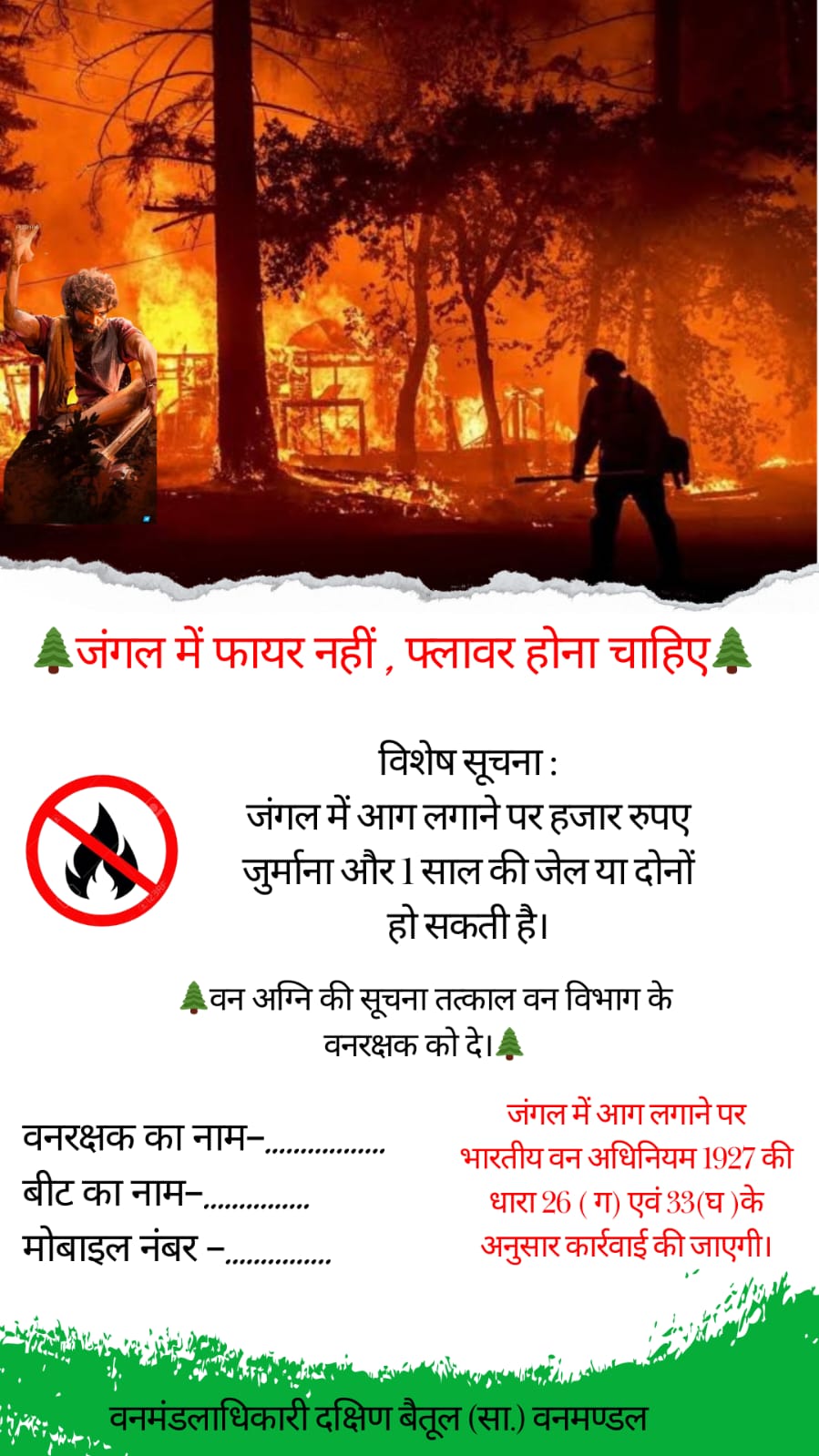 डीएफओ विजयान्नतम् टी.आर. ने बताया कि आग वनों को अत्यधिक हानि पहुंचाती है, यह पेड़-पौधों, वन्यप्राणियों, वायु प्रदूषण के साथ भूमि की उर्वराशक्ति पर भी विपरीत प्रभाव डालती है एवं बड़ी मात्रा में वनक्षेत्र प्रभावित होता है। वन अग्नि के दुष्प्रभाव से बैतूल जिला भी अछूता नहीं है। चूंकि बैतूल जिले का अधिकांश भाग सतपुड़ा पर्वत श्रृंखला अंतर्गत आता है अतः वनक्षेत्र अत्यन्त दुरह, पहाड़ी, खाई, घाटियों से घिरा रहता है जिस कारण आग लगने की सूचना प्राप्त होने पर अग्नि प्रभावित स्थल तक पहुंचकर भीषण गर्मी में आग बुझाना अत्यन्त दुरह कार्य है।